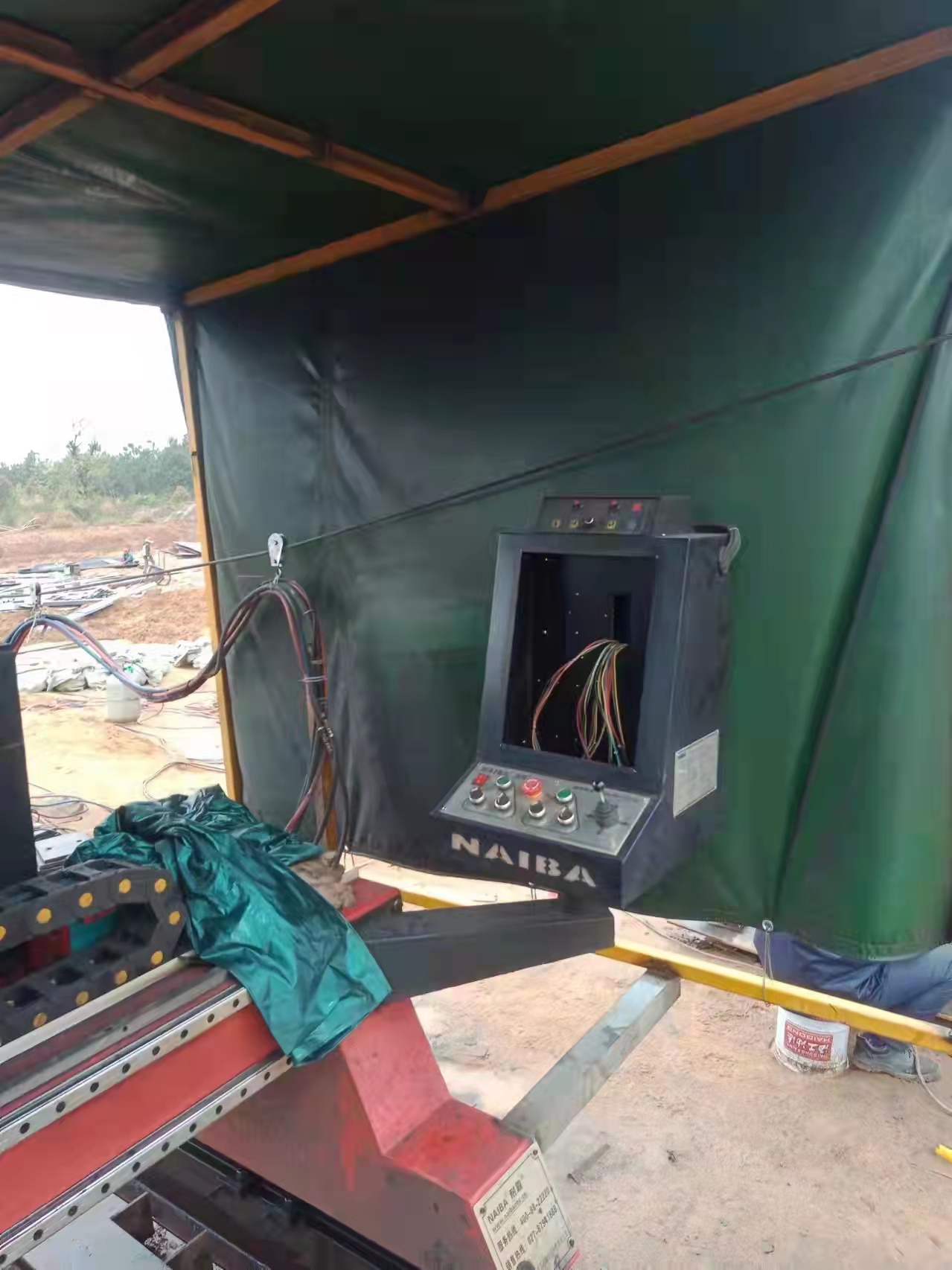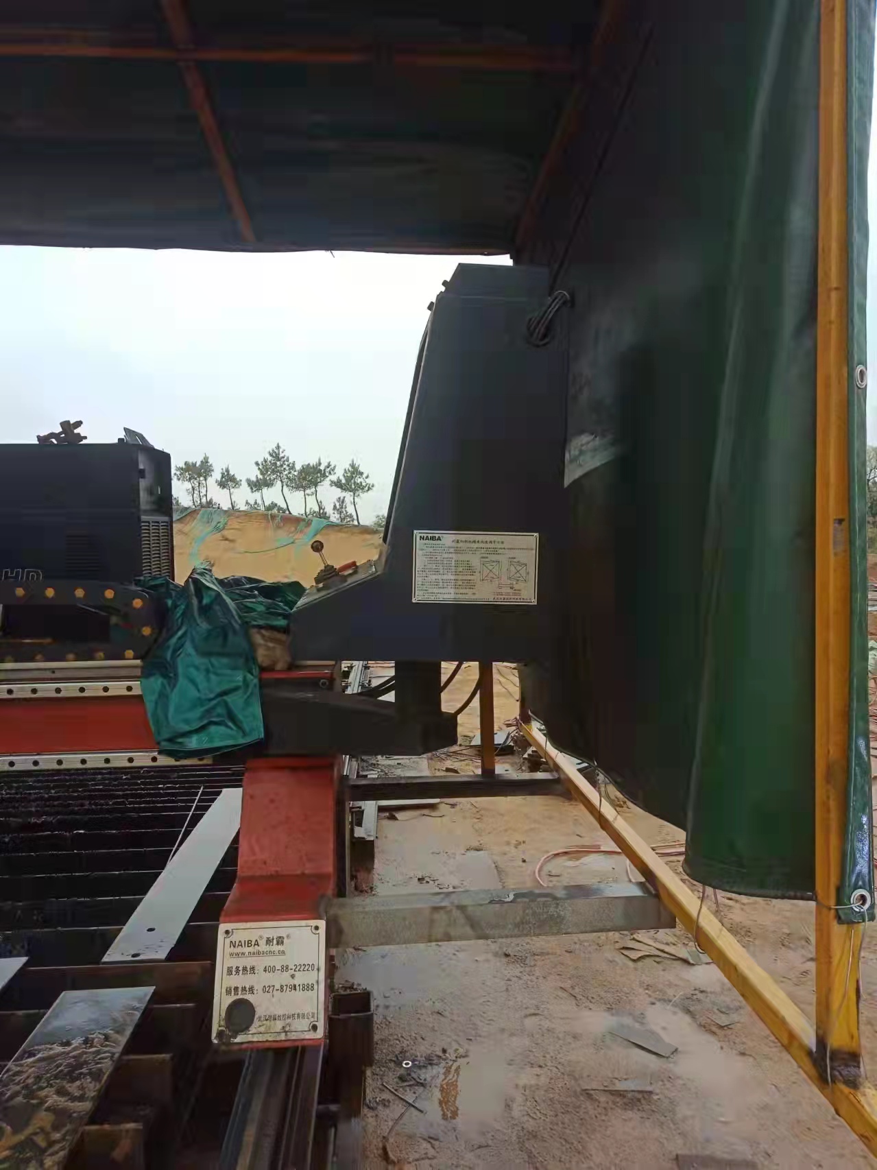 该公司于2022年1月份采购武汉耐霸数控切割机一台,本台切割机主要配置是1火1等两用式,即可以火焰切割机,也能使用等离子切割机,搭配200A等离子电源,用等离子切割碳钢20mm钢板,该企业于露天工作,以下是现场图片: